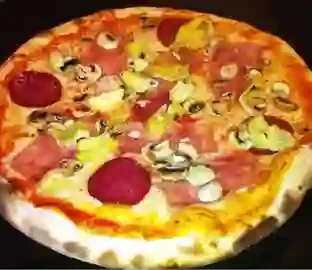 Anchovies, capers, tuna, olives, oregano, tomato sauce and mozzarella